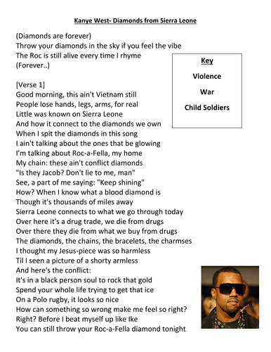 Blood Diamonds Lesson Plan. Posted on August 26 2016. This zip file is a 100 PREP FREE package with everything you need to teach the tragedy of blood diamonds in 1-2 days.
